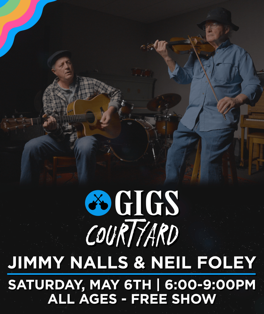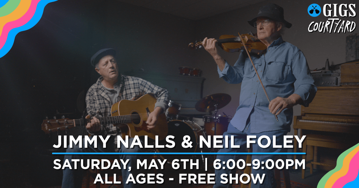 Jimmy Nalls and Neil Foley are making their GIGS Courtyard debut on Saturday, May 6th 2023! Jimmy & Neil have been performing separately and together in Irish pubs, dance halls and honkey-tonks for over forty years. Their current collaboration of “Music Americana” includes an eclectic mix of contemporary American music with a Celtic flair and original songs inspired by musical roots from across the sea.