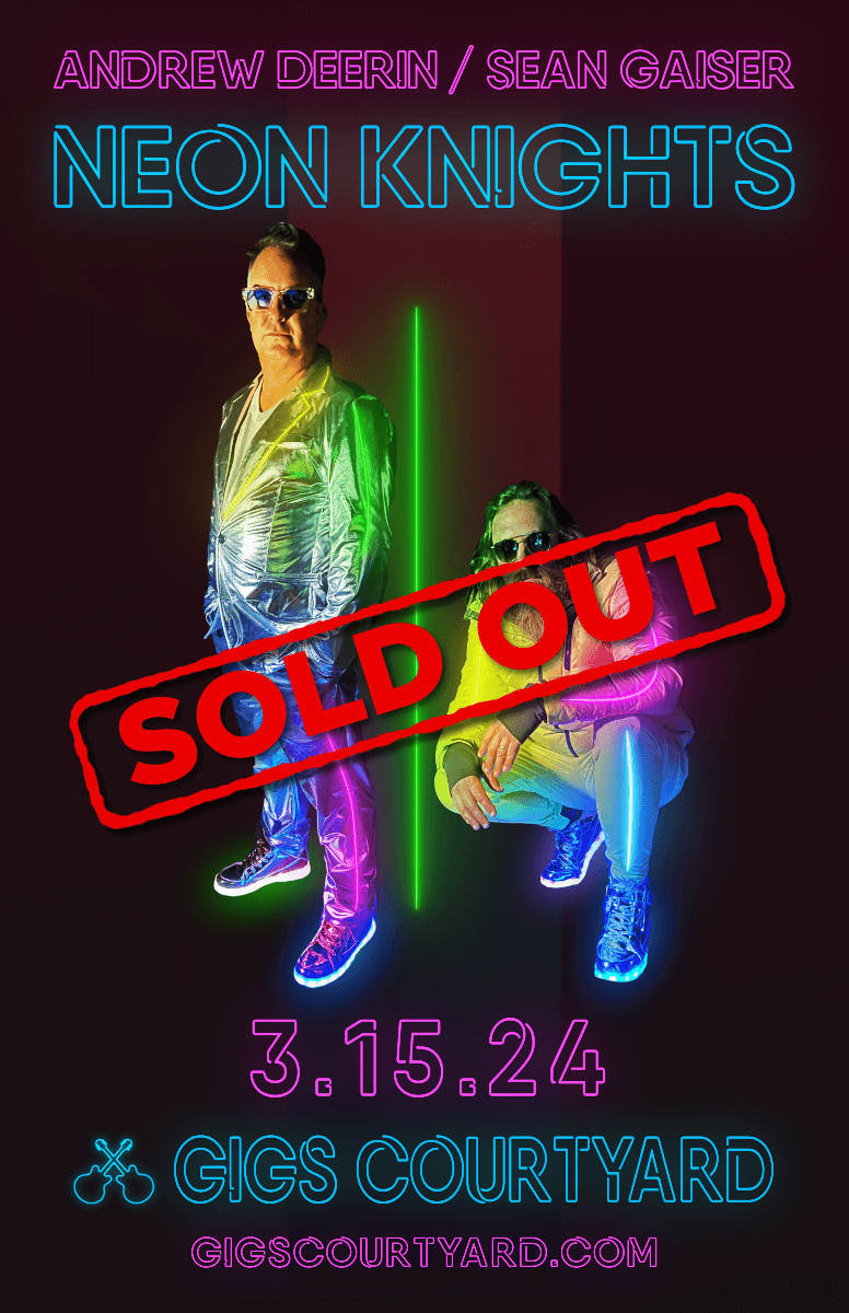For the first time in four years, Sean Gaiser and Andrew Deerin will be combining forces on the GIGS Courtyard stage. In this epic party performance, Sean and Andrew will front a 9-piece backing band complete with horns and multiple synthesizers. Get decked out in your best neon outfits and come turn up with us at NEON KNIGHTS!